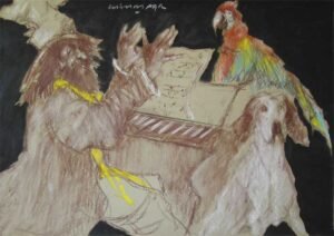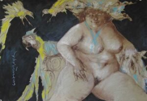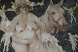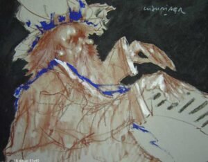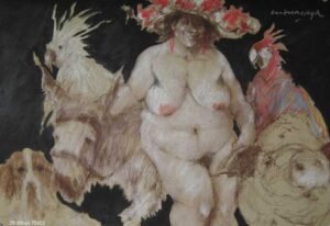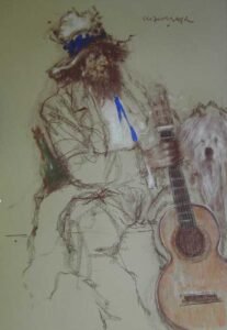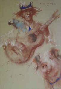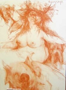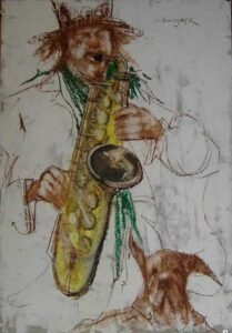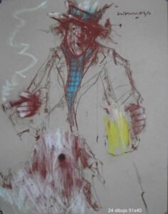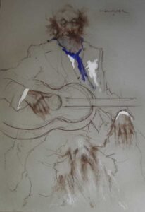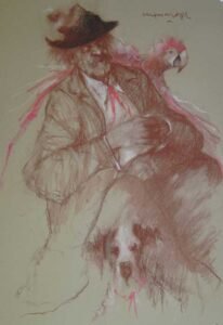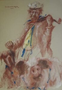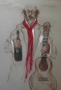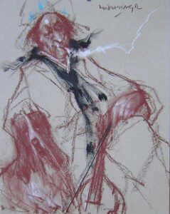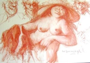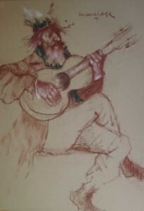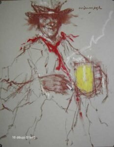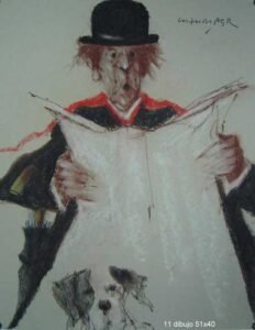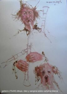 Le avala el dibujo riguroso, reinventado en el estudio, multiforme en la técnica y muy preciso en las expresiones, del que se vale para reflejar uno tras otro, como urgido por la fiebre de crear, el cambiante rosario de formas y tipos, recogidos al azar de la andadura.»