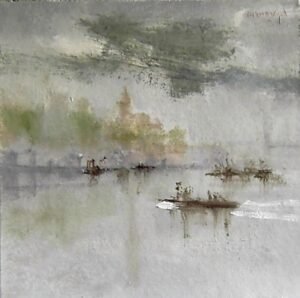 Cuando uno se acerca a estos cuadros de Juan Ramón Luzuriaga, siente la impresión no de que está ante una ventana, a cuyo través se contempla un paisaje, sino inclinado sobre la superficie de un estanque, en el que se refleja. Todo en esta pintura es sosiego y lejanía. Tiene algo de marquetiano, pero expresado con una materia mas temblorosa, cuyos matices, las más de las veces, no proceden de diferencias de tono, sino de distinta densidad de la pasta.